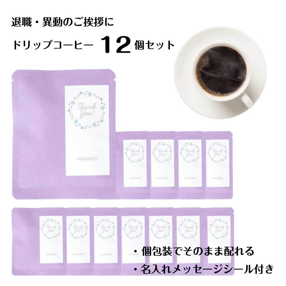 【名入れ】コーヒー プチギフト 12個 セット お世話になりました サンキュー シール 付き お名前入れ無料