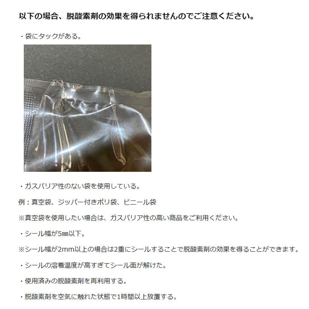 ・脱酸素剤は繰り返しお使いにはなれません。