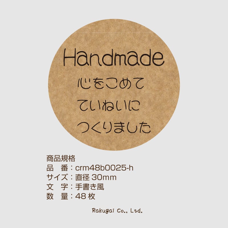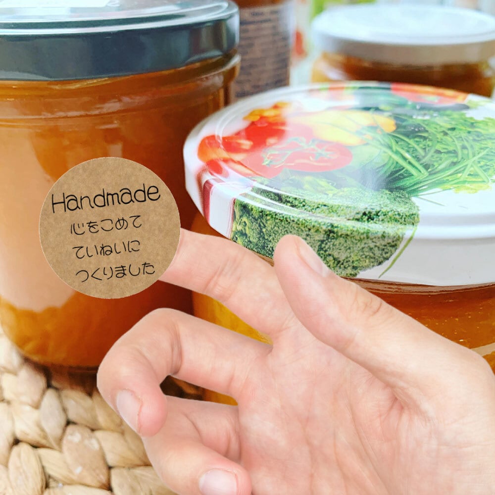 ハンドメイド シール 48枚 クラフト 直径3cm 販促 心をこめて 字体 フォント 選べる